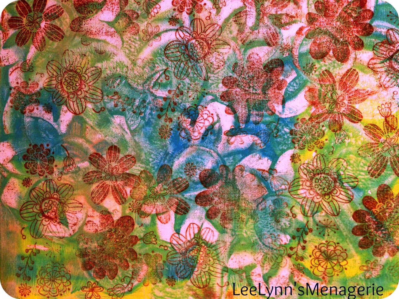 SOME RANDOM GELLI PRINTS DONE ON FABRIC AND STAMPED